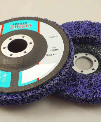 Dysk włókninowy nylonowy z powłoką ceramiczną w kolorze fioletowym oraz systemem zaawansowanych wiązań żywicznych - tzw. "włosy murzyna". Stosowana do usuwania rdzy, usuwania zgorzelin, starych farb - nawet wielowarstwowych Używana do przygotowania wstępnego powierzchni przed spawaniem. Zalety: dwa razy odporniejsze od konkurencyjnych ściernic w zakresie czasu eksploatacji; nie ulegają ukruszeniu w obiektach pokrytych rdzą; lżejszy nacisk zapewni wykończenie podobne do powierzchni materiału ściernego średniego rozmiaru; dodatkowy nacisk usunie naddatek pasmowo i czysto; wystarczająco miękki, aby zapobiec wyżłobieniom.