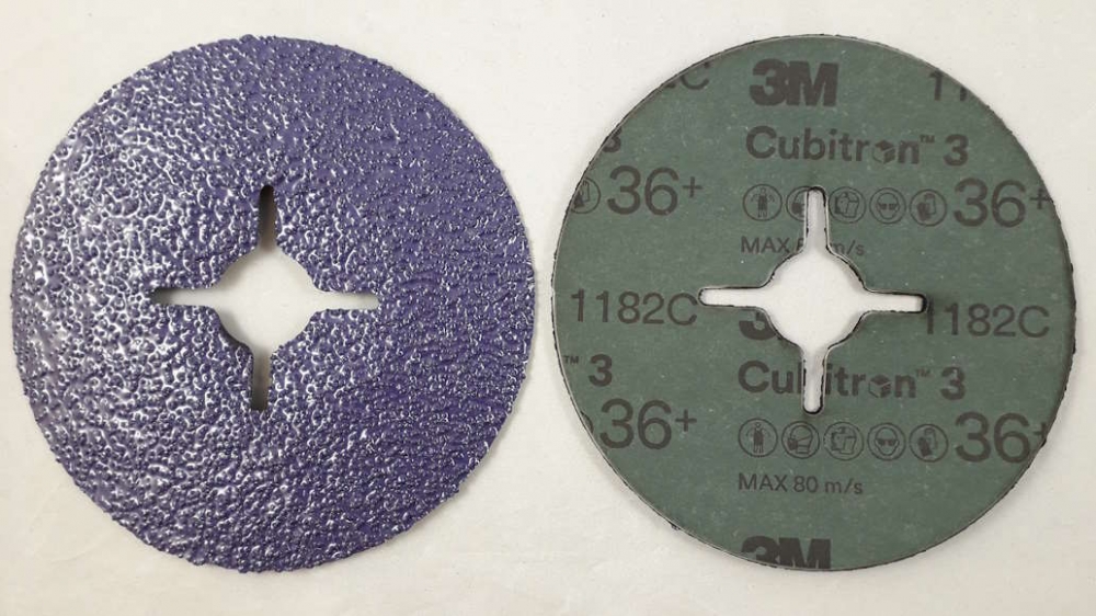 3M Cubitron3 1182C PRO to nowy nasyp ceramiczny w kolorze fioletowym charakteryzujący się 30% wyższą wydajnością - zastępuje materiał 982CX PRO. Dysk fibrowy 3M Cubitron3 1182C PRO został stworzony na bazie precyzyjnie kształtowanego ziarna 3M, służy do obróbki stali węglowej oraz zapewnia wyższą wydajność pracy i wytrzymałość w porównaniu do innych dysków fibrowych. Nie wymaga dużego docisku, co wpływa na zmniejszenie zmęczenia operatora, poprawę wydajności oraz zwiększenie ilości zadań wykonywanych jednym dyskiem, podczas aplikacji szlifierskich z dużym i średnim dociskiem. Dysk fibrowy 1182C PRO doskonale sprawdza się w zakresie m.in. fazowania krawędzi, usuwania spoin ze stali węglowej, zgorzeliny, wżerów i rowków.