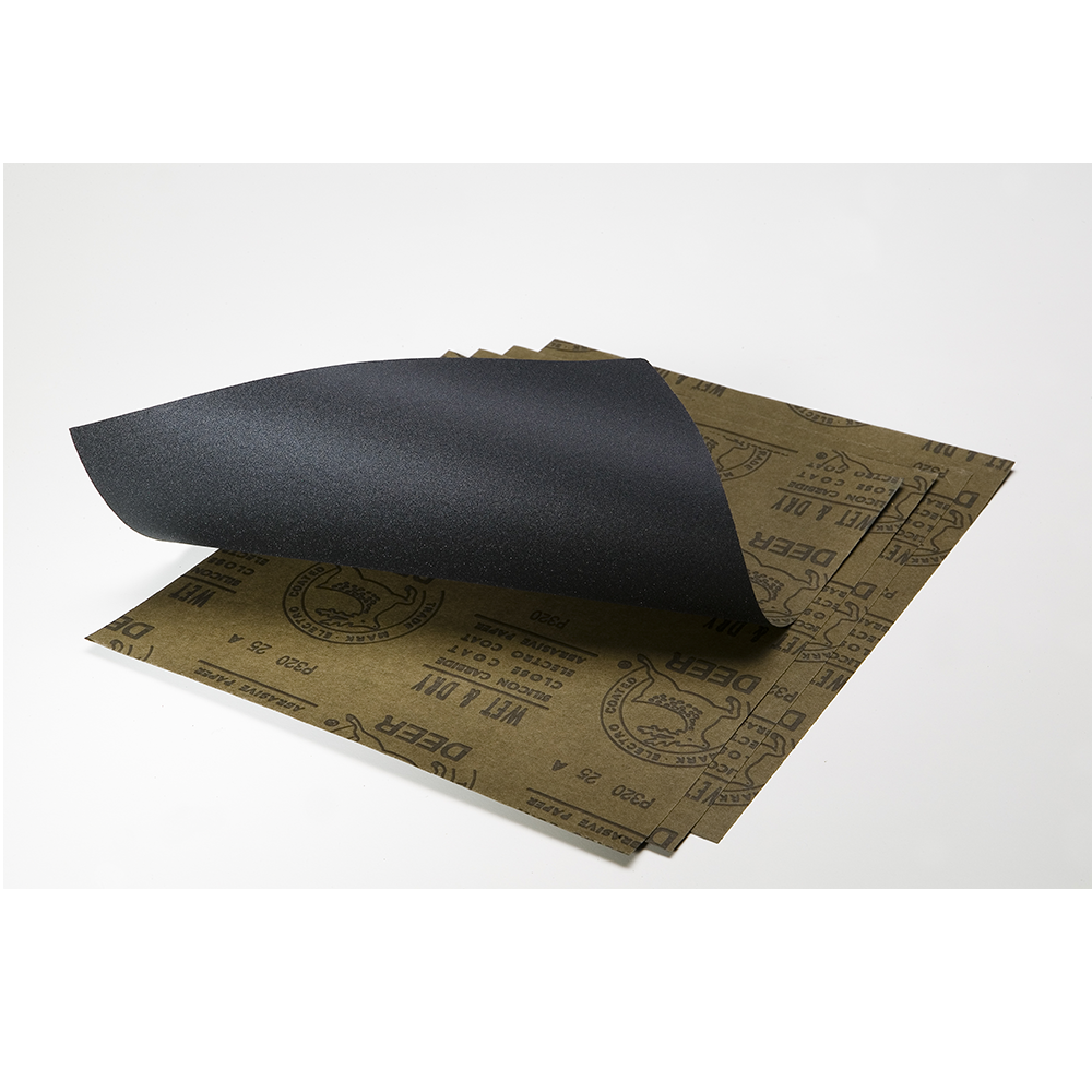 Papier ścierny wodny firmy Deerfoss - posiada zostosowanie w szlifowaniu na mokro , zarówno materiałów metalowych , jak i drewnianych. Charakteryzuje się bardzo dobrymi właściowościami ściernymi oraz dużą wytrzymałością użytkową. Nasyp - węglik krzemu .