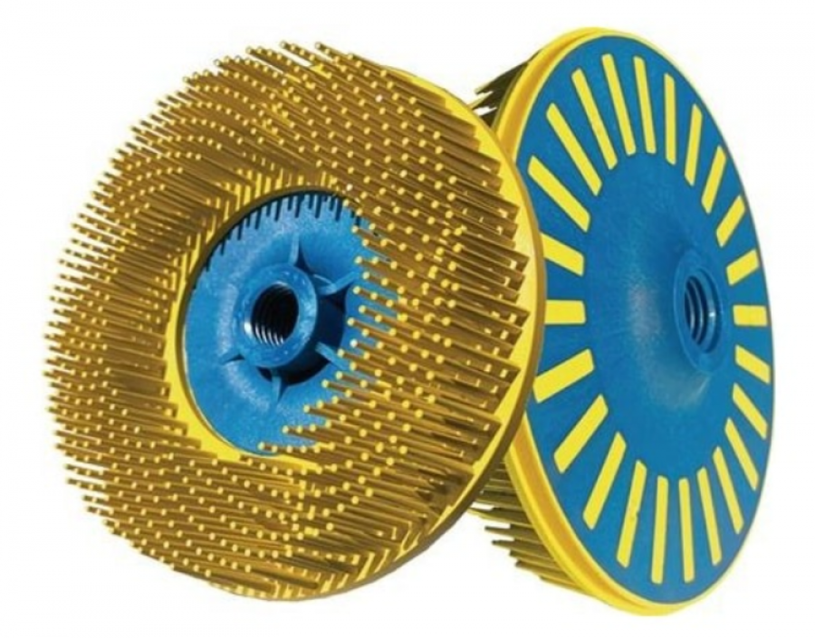Jednoczęściowa szczotka nylonowa TYROLIT SUNBURST z gwintem M14 do bezpośredniego zamontowania na szlifierce kątowej - odpowiednik 3M Bristle BD-ZB. Bezpieczna w użyciu z minimalnymi drganiami i hałasem, odporna na zapychanie w połączeniu z lepszą obróbką powierzchni. Stała jakość pracy, można ją stosować aż do całkowitego zużycia materiału, łatwość i szybkość wymiany, może pracować z szeroką gamą szlifierek kątowych. Używana do usuwania powłok (farby, rdzy, środków klejących, gumy itd.), usuwania tlenków, zanieczyszczeń powierzchni, odbarwień związanych ze spawaniem. Obrabiany materiał to stal węglowa i nierdzewna, materiały nieżelazne (stopy miedzi, stopy aluminium itd.) i materiały syntetyczne.